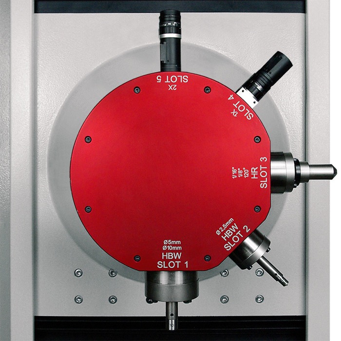 擁有七階鏡頭轉座,滿足多槽設計和不同格式的壓頭,在單一或多重的測量循環裡自動轉換工具以放大倍率測量試品表面。 |