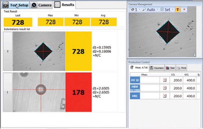 設置硬度計規模、負載力時間、照相機的性能、測試方法標準和轉換尺度。 |